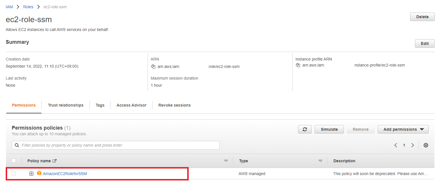 먼저 "AmazonEC2RoleforSSM" 권한이 부여된 Role을 하나 생성해줍니다.