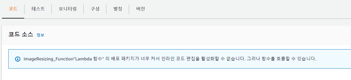 함수가 생성되면 아래와 같이 코드를 업로드할 수 있는 화면이 표시된 것을 확인할 수 있습니다.