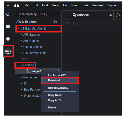[aws]-[US East]-[Lambda] 아래 생성한 Lambda 함수를 클릭하여 [Download]를 클릭합니다.
