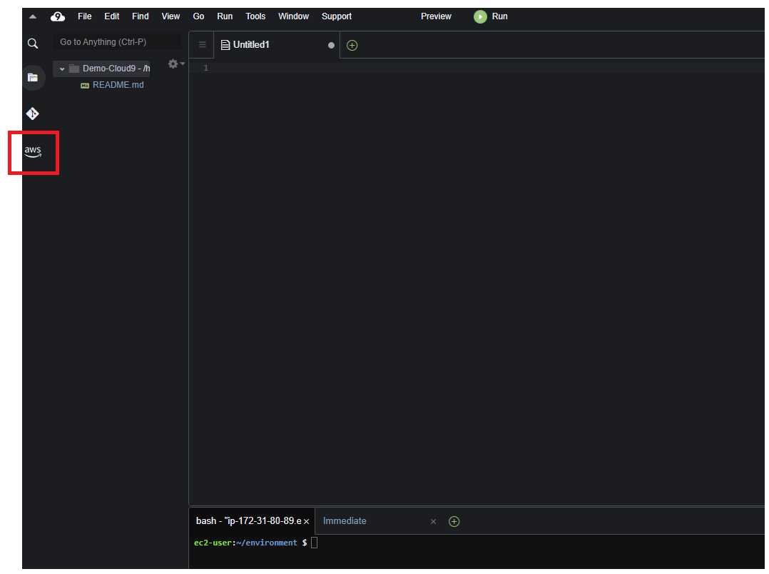 -> Terminal에서 aws configure 명령어 입력 후 계정정보를 입력 -> Cloud9 새로고침 후 재시도