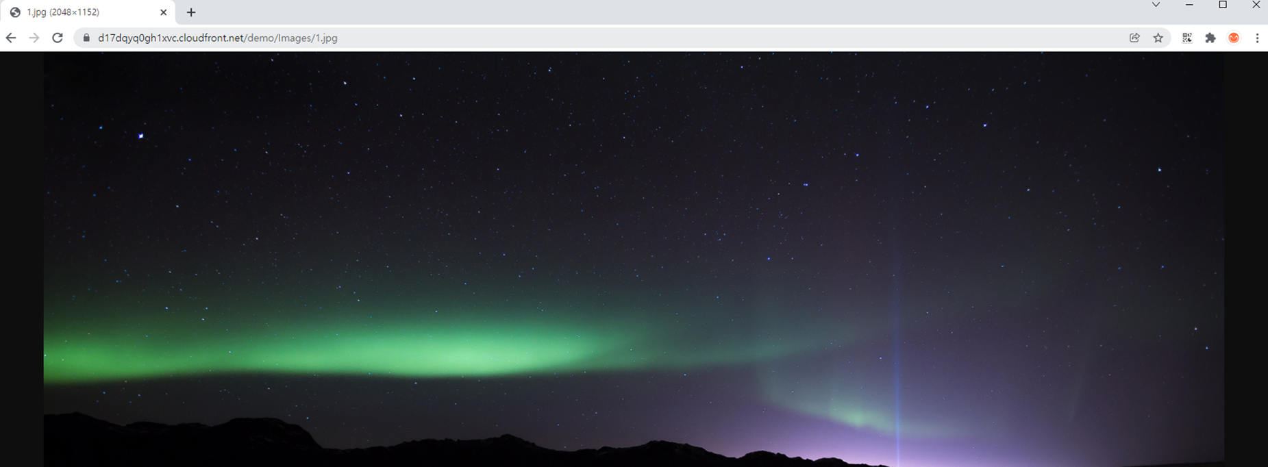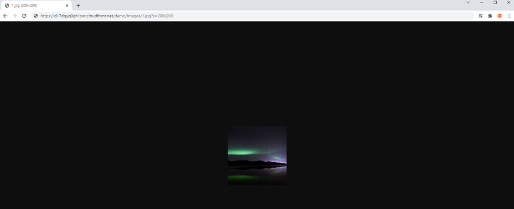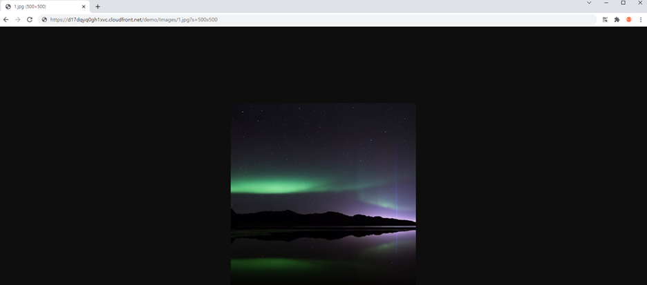 이제 CloudFront 뒤에 파라미터 값을 붙여서 실시간으로 이미지가 리사이징되어 표시되는지 확인해보겠습니다.
