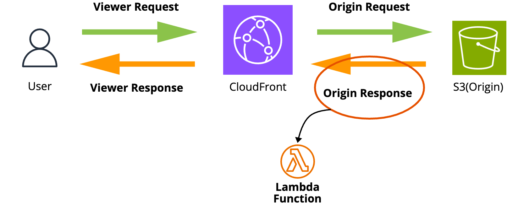 Lambda 함수는 S3 Origin에서 원본 이미지가 반환될 때 실행되기 때문에 오리진 응답(Origin Response) 이벤트를 클릭해줍니다.