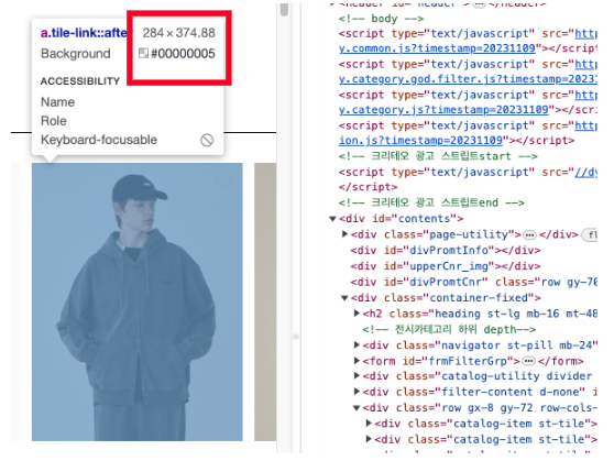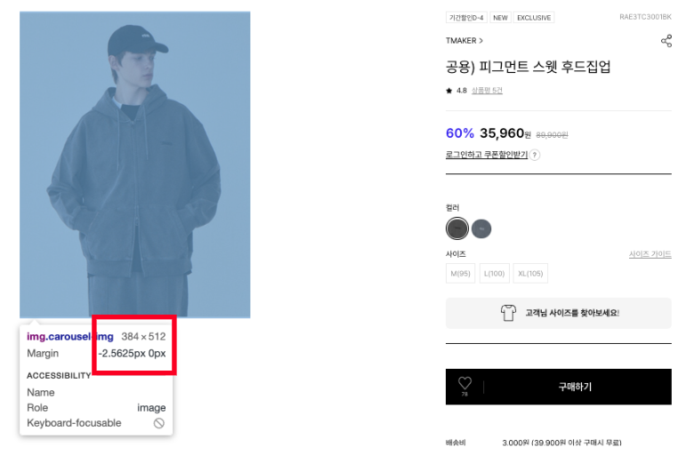 상품을 클릭한 후 상세 페이지에 들어가니 사진의 크기가 384 x 512로 커진 것을 볼 수 있습니다.