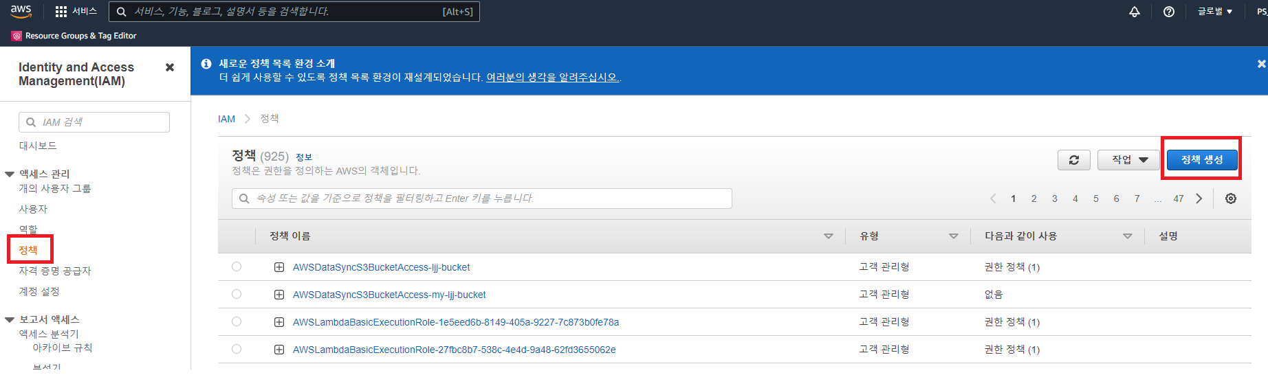 <your region name>과 <your bucket name>의 경우 각자의 리전과 버킷명을 입력합니다.