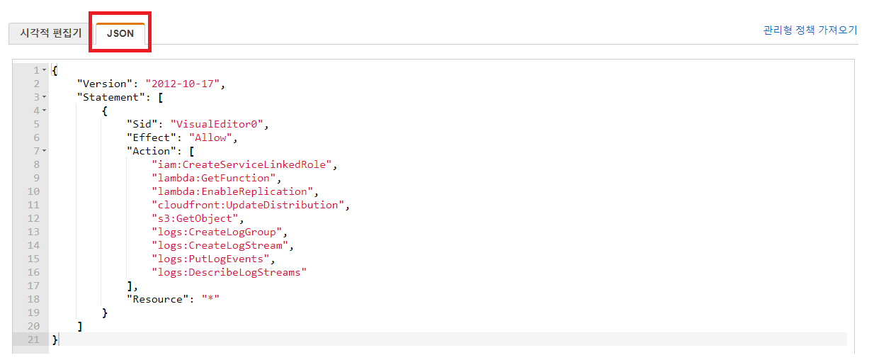 만약 Lambda 함수를 버지니아 북부 리전에 생성하지 않았다면 해당 버튼은 비활성화 돼있으므로 리전을 반드시 확인합니다.