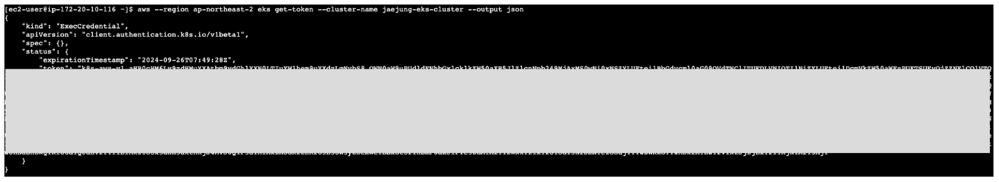 aws --region ap-northeast-2 eks get-token --cluster-name jaejung-eks-cluster --output json