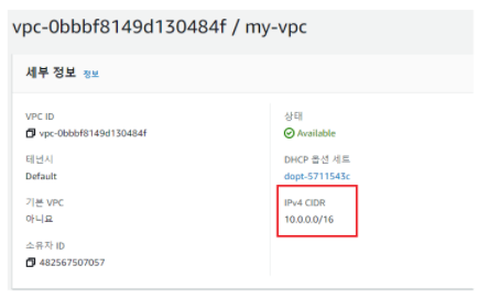 때문에 사설망 대역의 사용을 권장한다. ex) 10.0.0.0/16