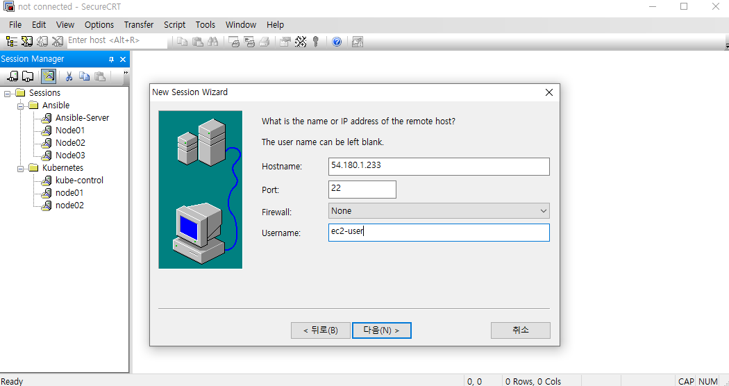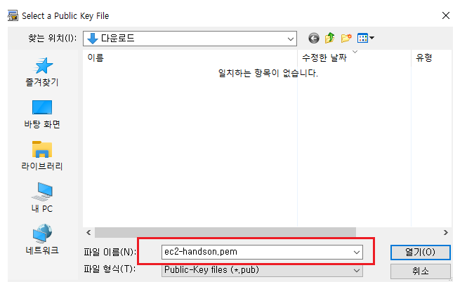 - [Hostname]엔 아까 확인했던 퍼블릭 ip를, Username에는 ec2-user를 적어준다.