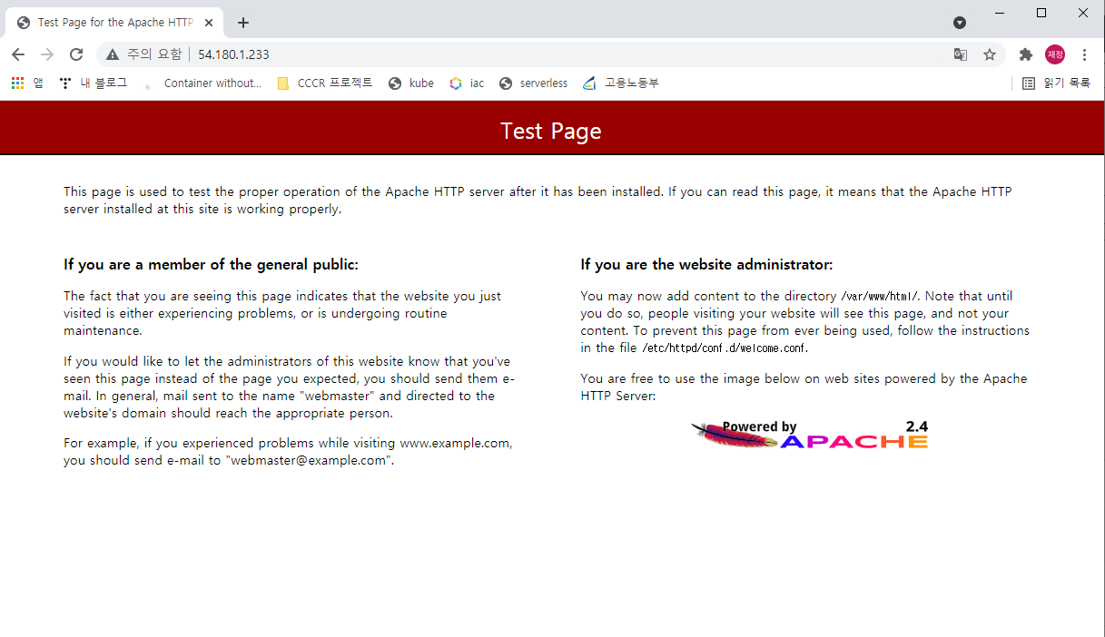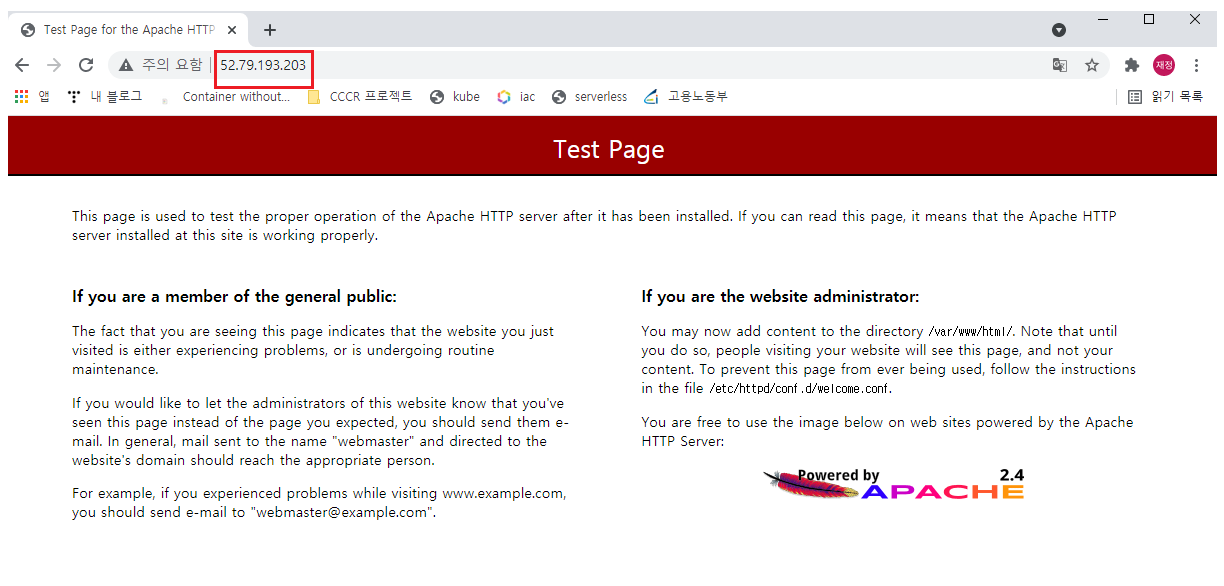 - 다시 브라우저를 열어 퍼블릭 ip 주소를 입력해보자.