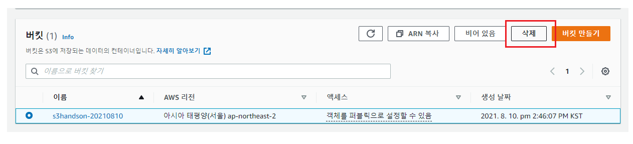 - 실습이 끝난 후엔 생성했던 버킷을 꼭 삭제해준다.