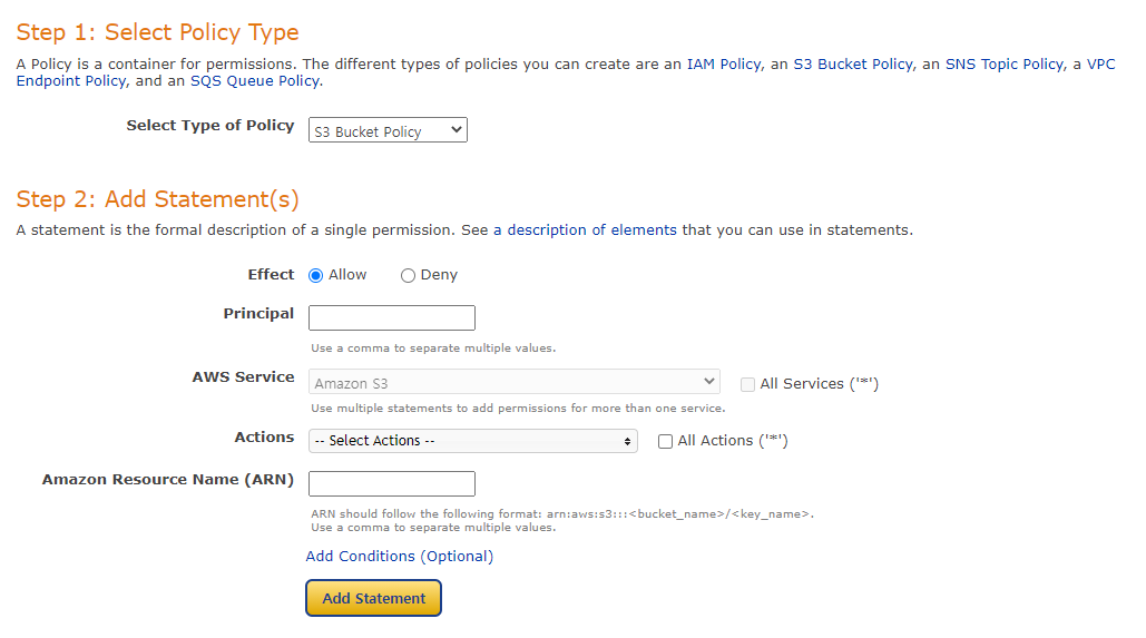-> S3 Bucket에 대해 AWS가 정의한 고유한 값, 접근 권한을 주고자 하는 버킷을 지정한다.