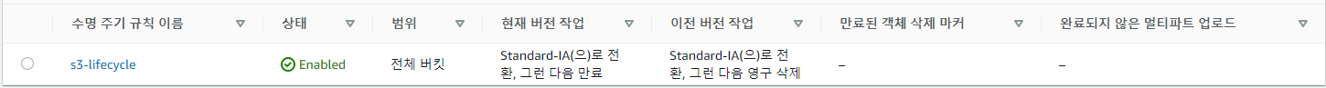 - [수명 주기 규칙 생성]을 통해 기간을 설정하여 좀 더 비용 효율적으로 스토리지를 관리할 수 있고