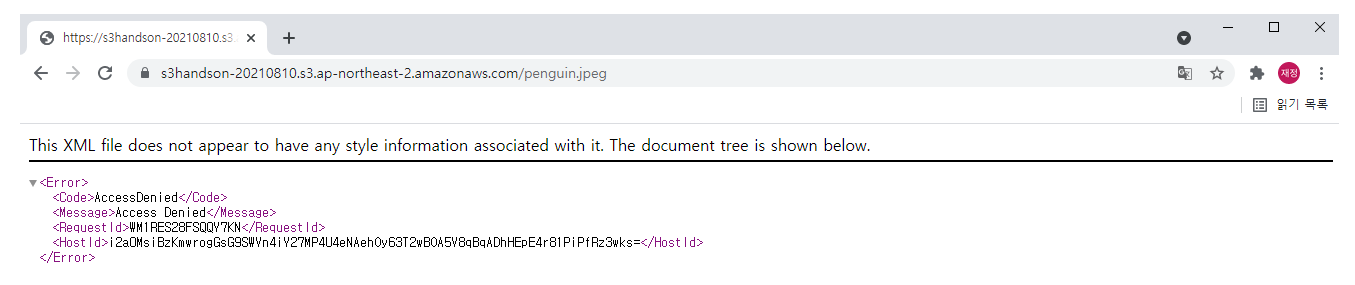 - 접속하면 아래와 같이 "Access Denied"가 표시된다.