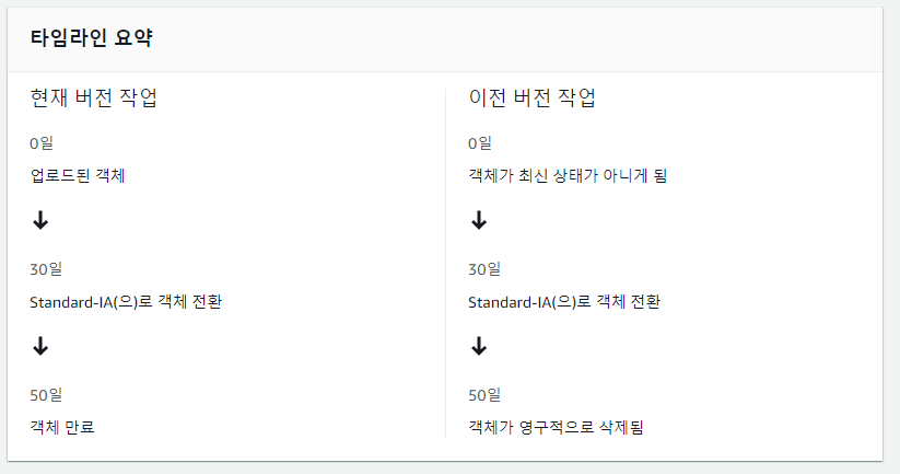 - 옵션을 지정하면 [타임라인 요약]을 통해 정의할 수명 주기를 요약해준다.