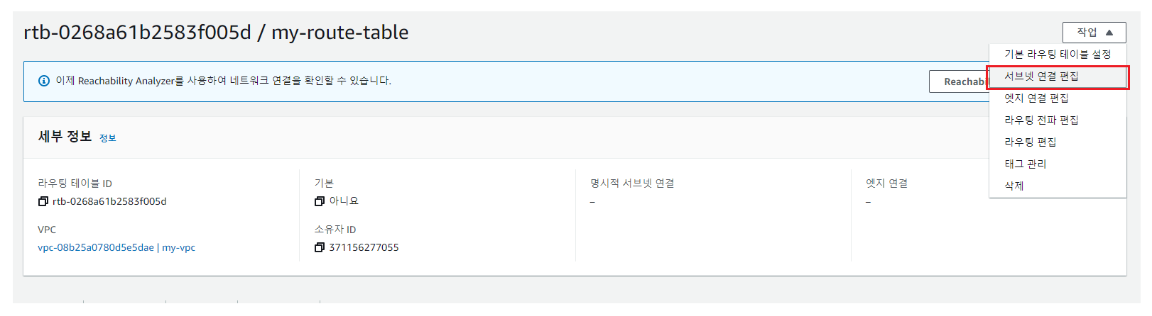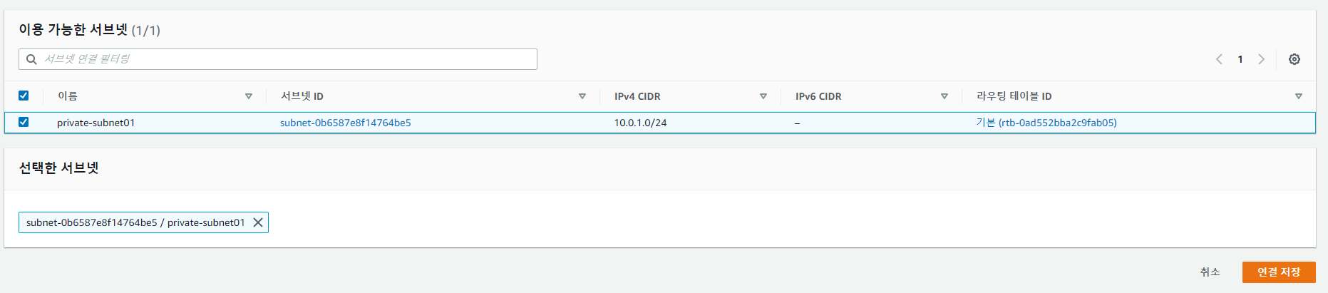 - 만들어진 라우팅 테이블과 연결할 서브넷을 선택하는 과정이다.