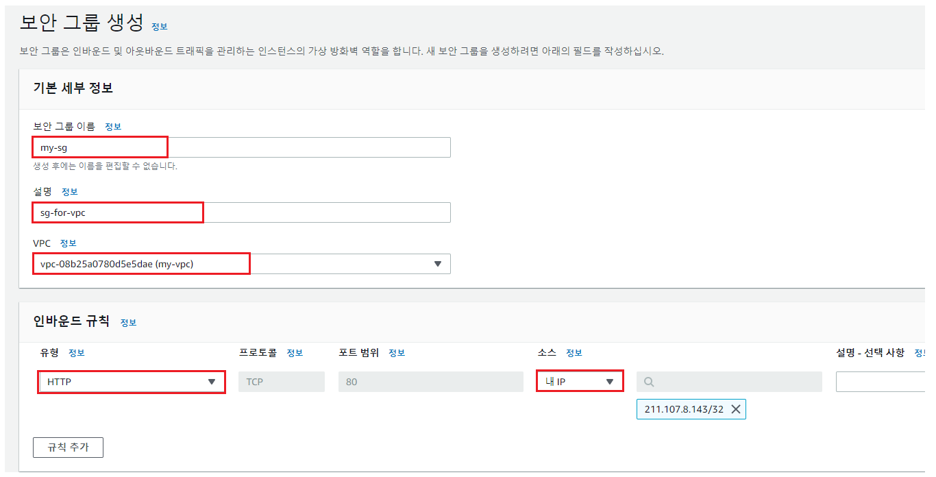 5. 보안 그룹 생성 및 설정하기