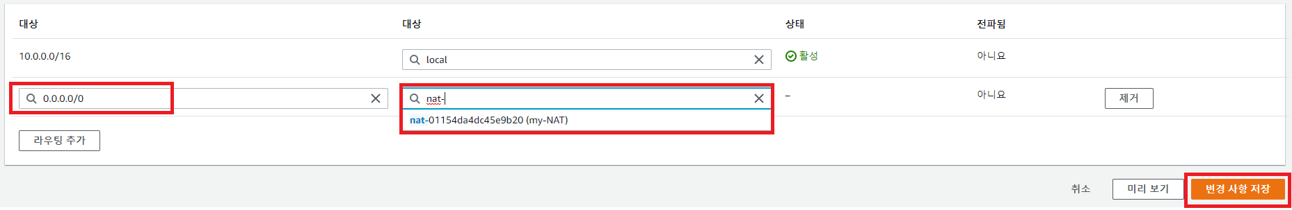 Step4. 라우팅 테이블 생성 및 설정하기