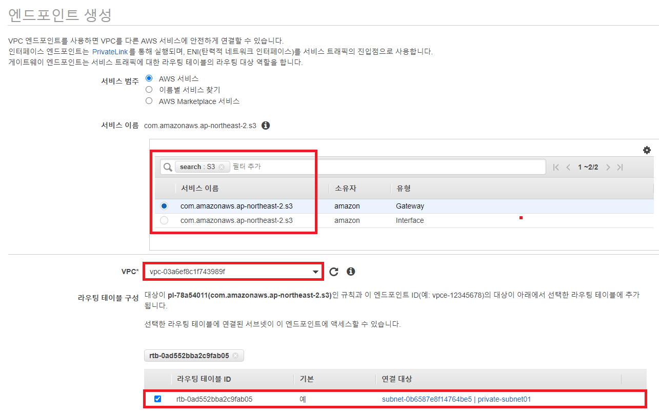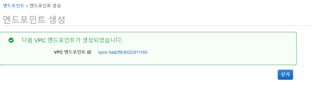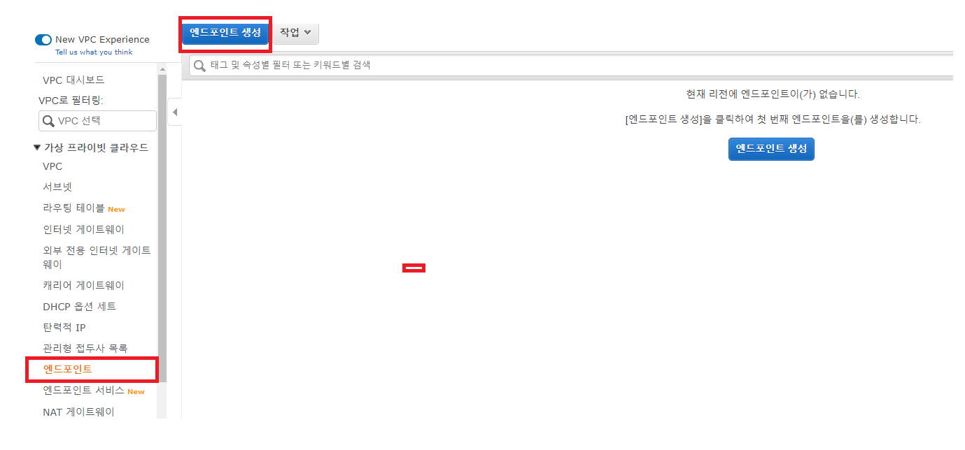 - [엔드포인트 생성]을 통해 새 VPC 엔드포인트를 생성한다.