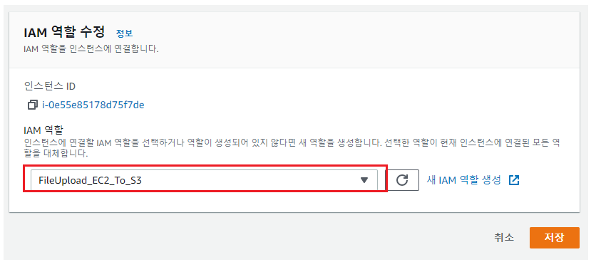 이제 생성한 역할을 EC2 인스턴스에 할당해보자.