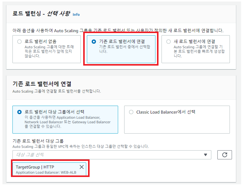 생성해두었던 기존 로드 밸런서와 연결한다.