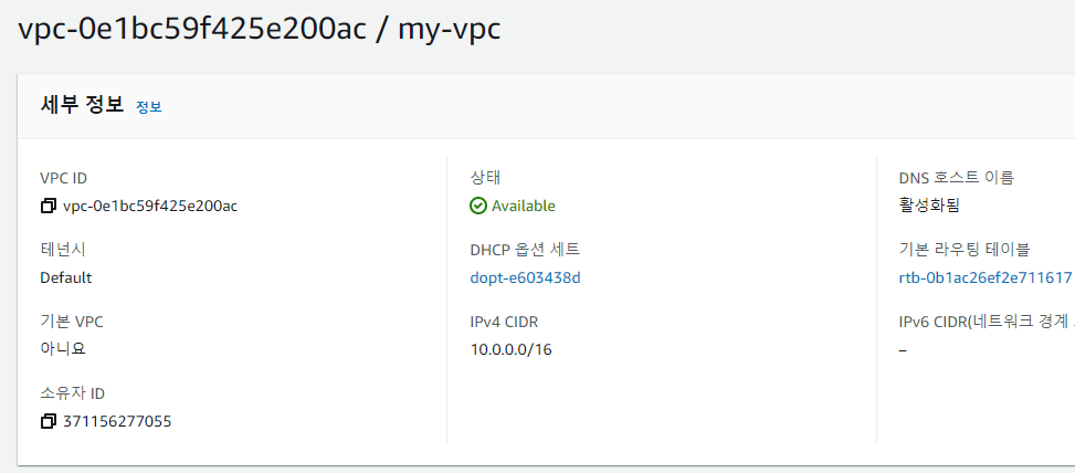 기본적인 VPC 구성 과정은 생략하도록 한다.