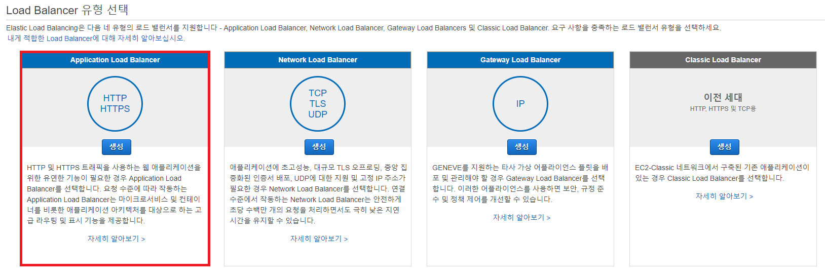 HTTP 트래픽에 대한 부하 분산을 처리해야 하기 때문에 "Application Load Balancer"를 선택한다.