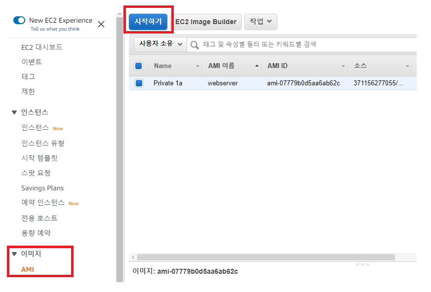 조금 전 생성했던 인스턴스를 이미지로 생성하여 Private Subnet에 생성한다.