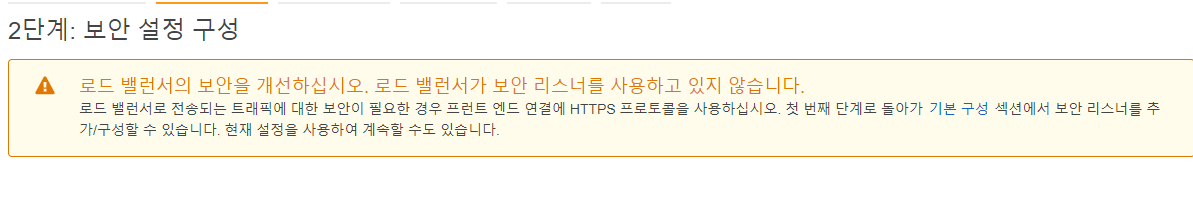 [보안 설정 구성]은 SSL 설정인데 이번 실습에선 적용하지 않으므로, [보안 그룹 구성]으로 넘어간다.