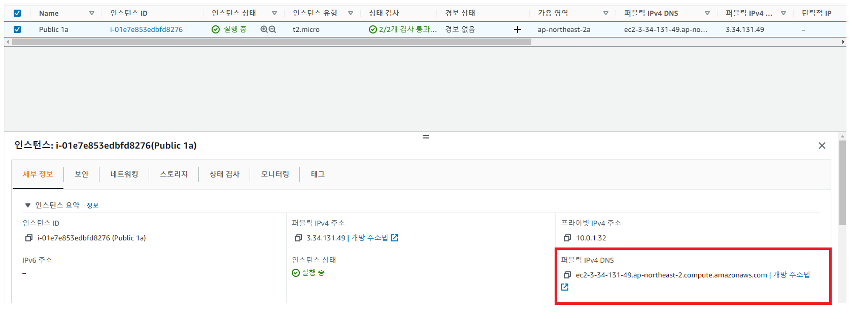 인스턴스가 다 생성됐으니 퍼블릭 DNS 주소를 통해 웹 서버로 접속해보자