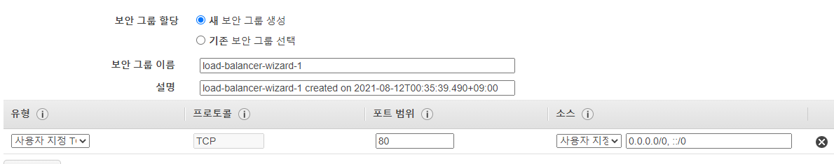 새 보안 그룹을 생성한 후 [라우팅 구성]으로 넘어간다.