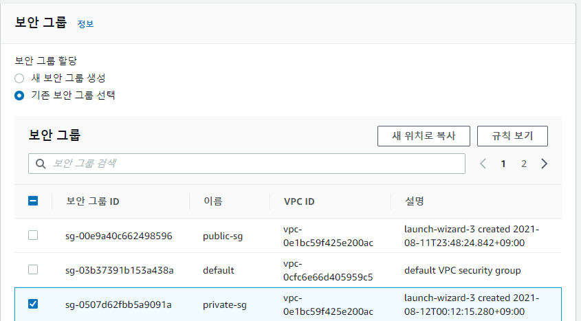 두 번째 인스턴스는 private-subnet02를 선택해주면 된다.