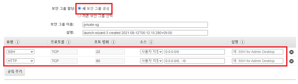 새 보안 그룹을 생성한 후 [라우팅 구성]으로 넘어간다.