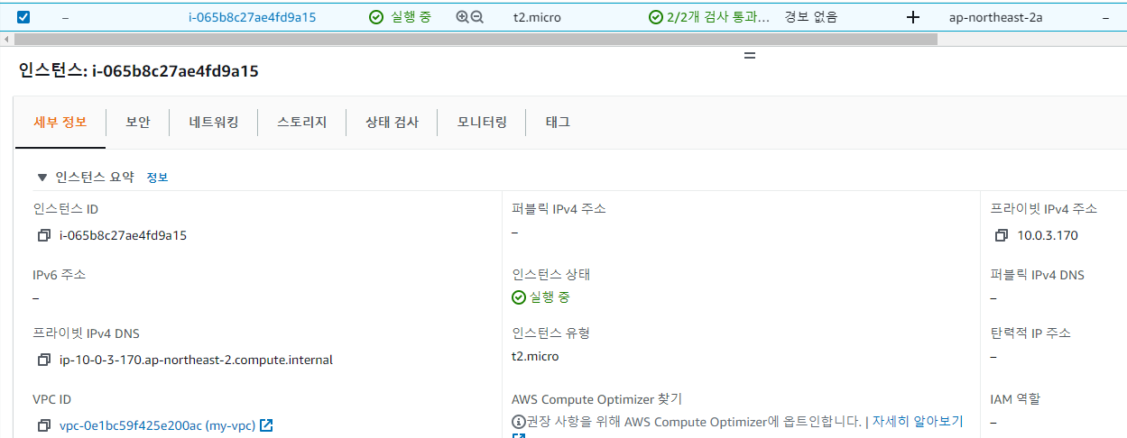 두 번째 인스턴스는 private-subnet02를 선택해주면 된다.