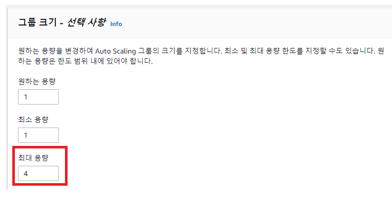 [그룹 크기]에서 최대 용량을 4로 설정한다.