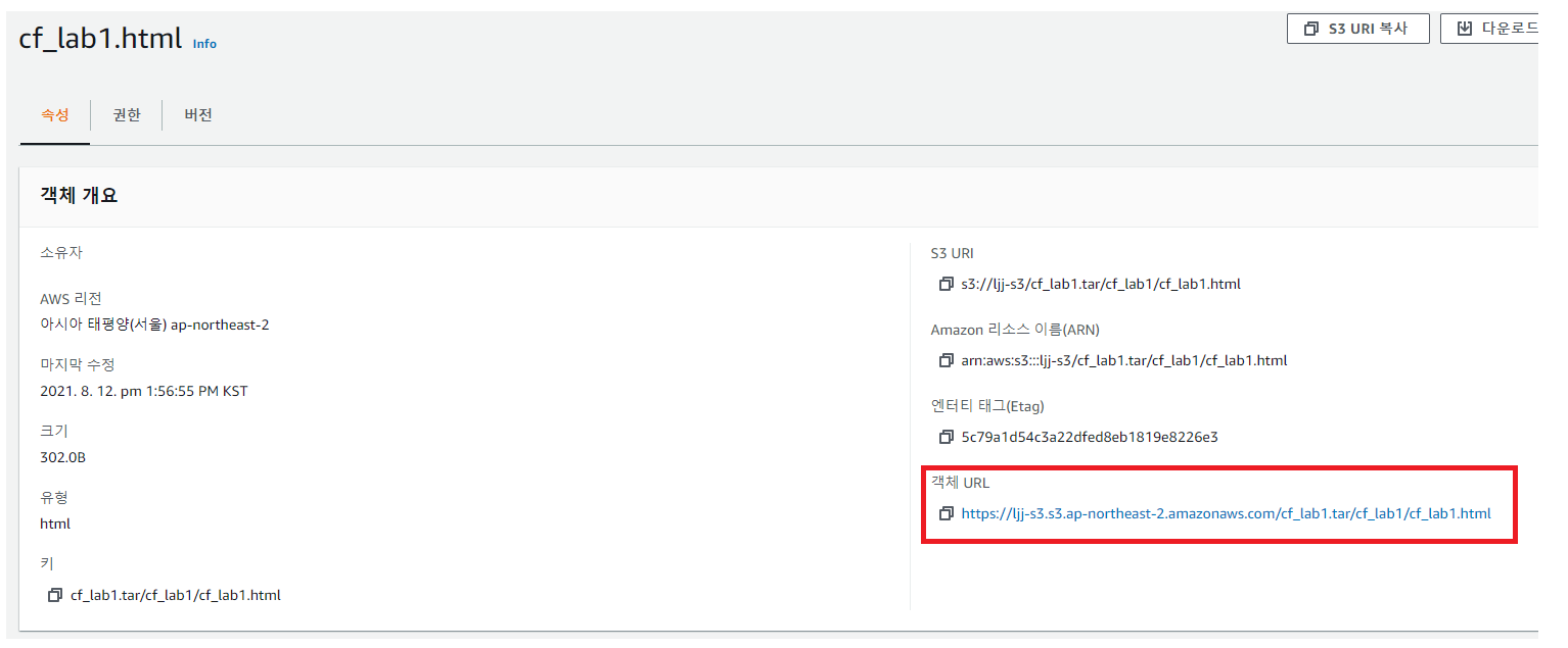 객체 URL을 접속하여 웹 페이지를 확인한다.