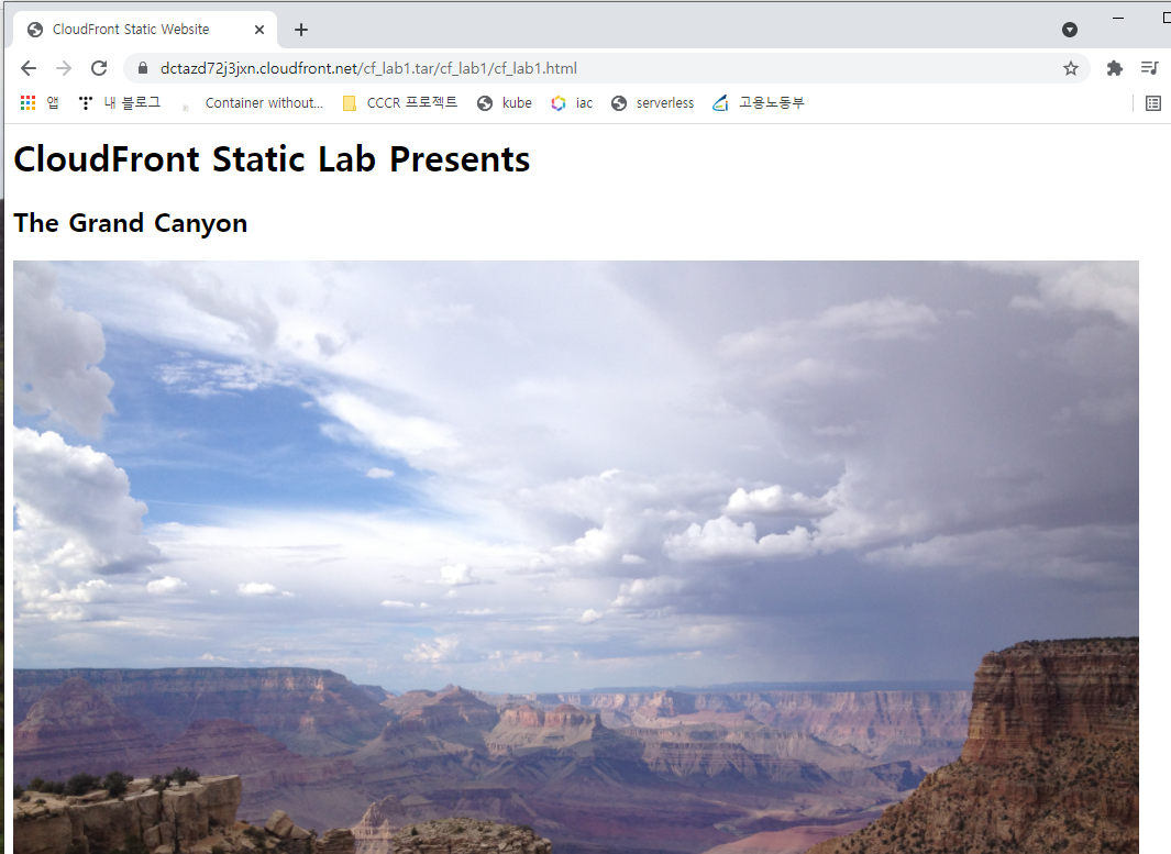 CloudFront 도메인을 접속하면 동일하게 컨텐츠 내용을 확인할 수 있다.
