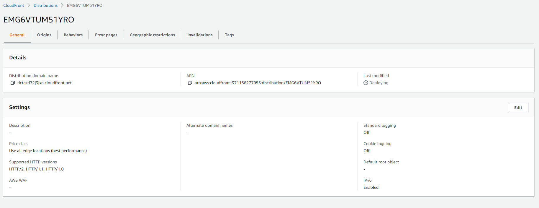 이렇게 새로운 CloudFront 배포판이 생성됐다.