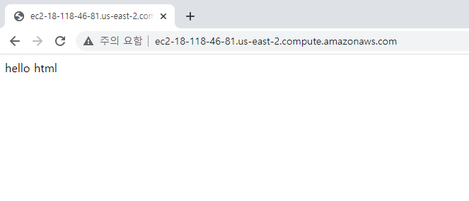 퍼블릭 DNS 주소로 접속하면 html 파일에 작성한 내용을 확인할 수 있다.