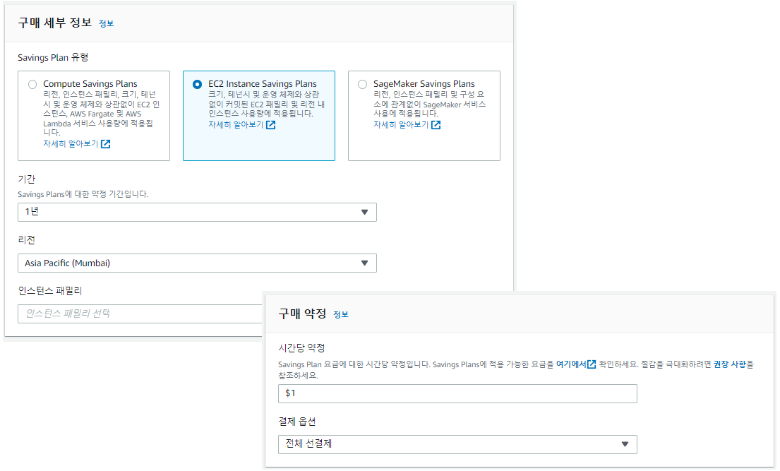 EC2 인스턴스 패밀리에 대해 '시간당 얼마를 쓰겠다!'로 잡고 1/3년 약정을 걸어서 사용