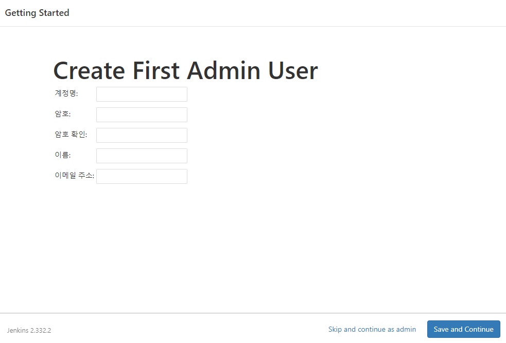이제 Admin 계정을 생성하면 구축이 완료된다.